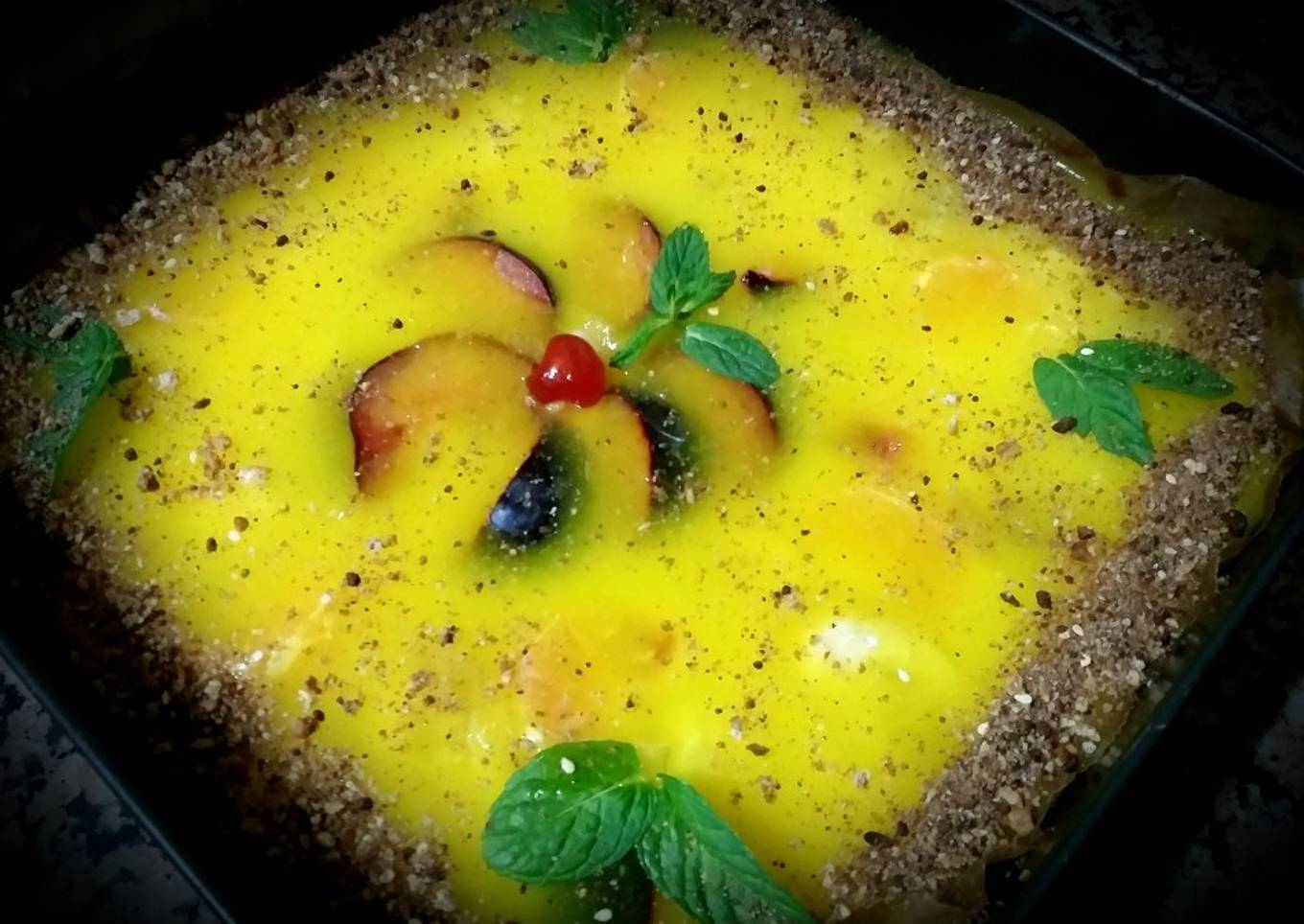 Instructions to make to make Tarte à deux flan vanille et orange aux fruits de saison