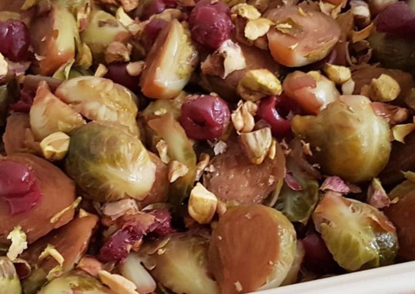 Choux de Bruxelles aux griottes noix, pistaches et griottes