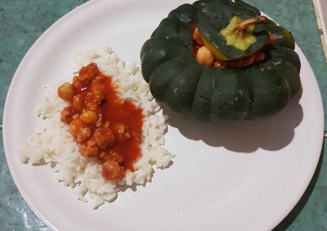 - Garnir la courge de sauce et recouvrir de fromage râpé. Faire gratiner au four. Servir avec du riz.